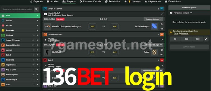 O 136bet login oferece uma grande seleção de opções de apostas em e-sports com probabilidades competitivas